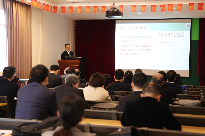 学院副院长程辉教授介绍了福建医科大学口腔医学专业研究生管理的相关规定,着重介绍了研究生学位论文评审制度、导师年度考核、中期考核制度、研究生学术交流基金使用办法和研究生业务费的管理使用等制度。要求全体研究生导师认真阅读,深入学习国家、学校、学院各类研究生管理规章制度,不断提升自身综合素质,以促进研究生教育教学质量的提升。