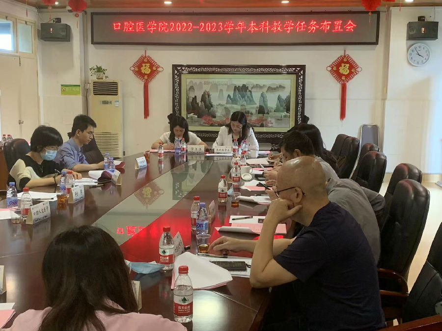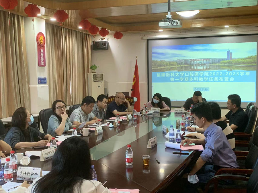 2022年5月30日下午,福建医科大学口腔医学院2022-2023学年第一学期本科教学任务布置会在医院7楼会议室举行。会议由学院本科教学办梁雪主持,党委委员、副院长黄晓晶、各教研室主任参加了此次会议。