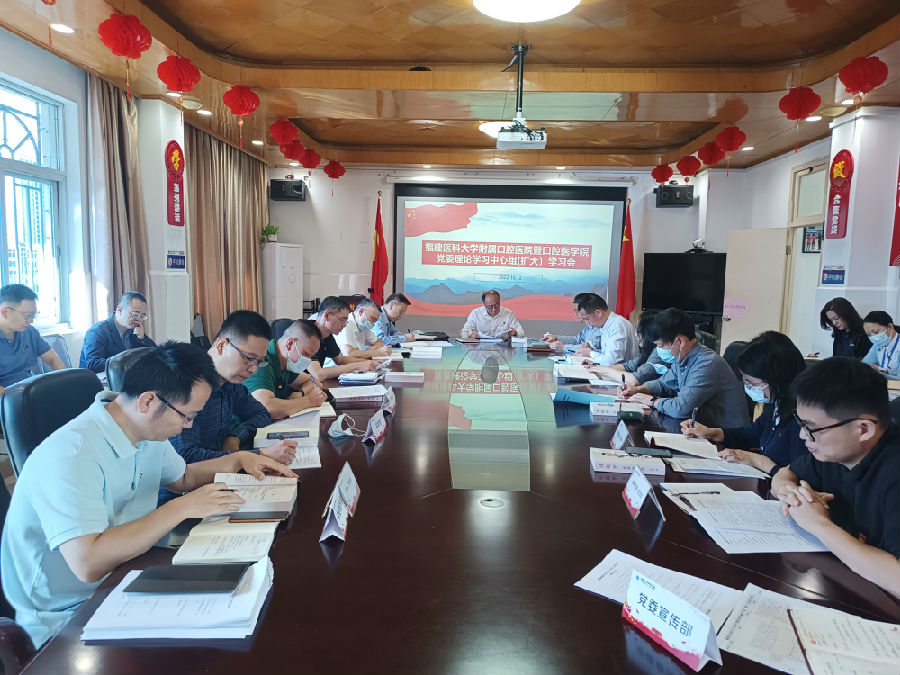 10月12日上午,我院召开党委理论学习中心组(扩大)学习会,集中学习《习近平谈治国理政》第四卷、《习近平经济思想学习纲要》以及《公立医院内部控制管理办法》。学习会由党委书记陈江主持并讲话。院党委委员、副院长骆凯作重点发言;党委委员依次作交流发言;本科生第一党支部书记潘伟平、本科生第二党支部书记张锦雀作汇报发言。校纪委纪检监察室副主任、医院纪委副书记王浩波对支部书记发言进行点评。