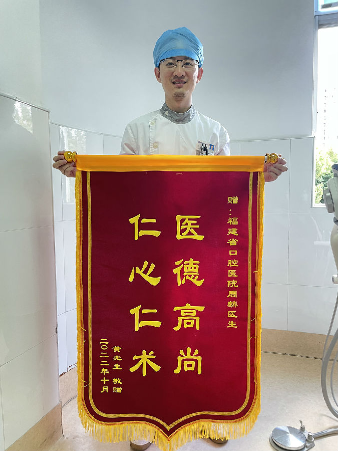 近日,我院种植科周麟医师收到一面锦旗,表达了患者及家属对就诊过程及治疗效果的认可。