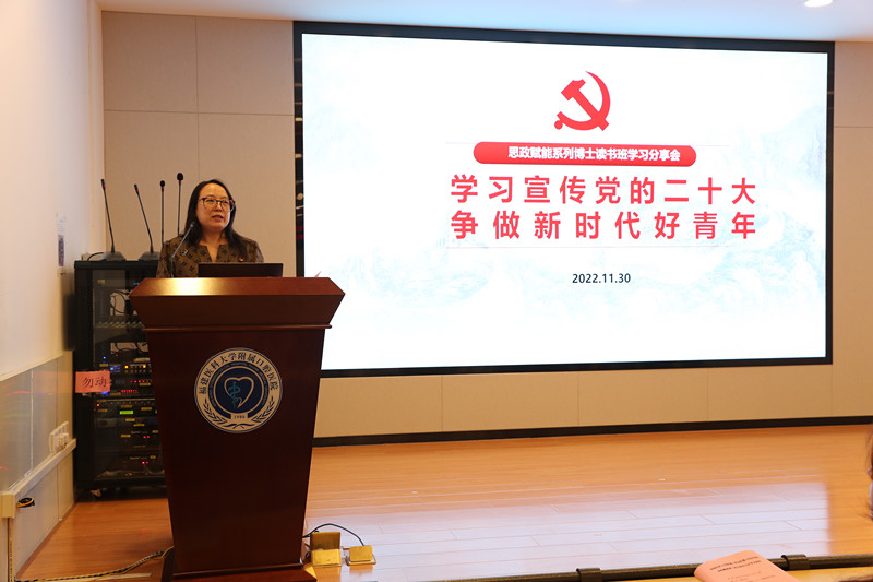 博士读书班班长陈帅为大家分享党的二十大报告中总书记对新时代青年的寄语,强调要坚定不移听党话、跟党走,并号召福医口腔的青年们,要有理想、敢担当、能吃苦、肯奋斗,让青春在新征程中绽放绚丽之花。
