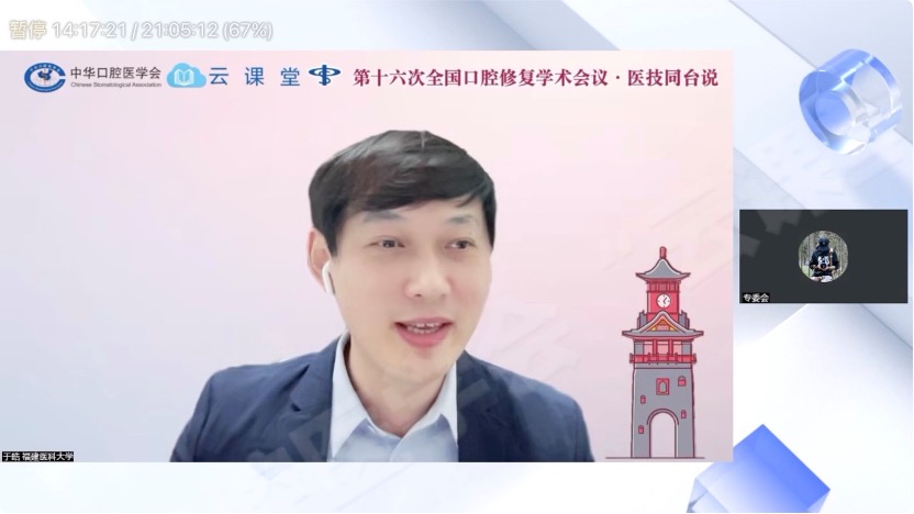本次学术会议进行首届“医技同台说“版块是由中华口腔医学会修复和修复工艺2个专委会共同举办的,由全国的知名口腔修复工作者分别从医生和技师的角度来分析案例的失败原因,中华口腔医学会口腔修复学专业委员会常务委员、福建医科大学附属口腔医院副院长于皓副教授受大会邀请担任“医技同台说”的主持人,同时我院修复科医师林泓磊和技工室技师郑智烽共同参加了“医技同台说”,并汇报了《咬合重建失败再修复的临床探索》,以自身经验向大家分享了咬合重建失败再修复的病例探索,从不同视角来提供解决方案。