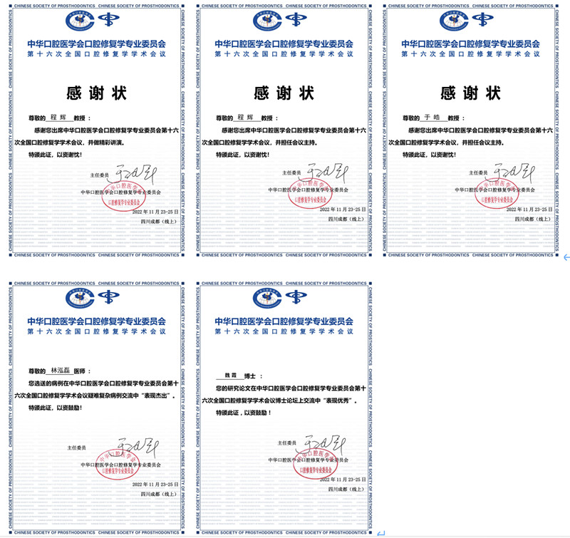 口腔修复复杂疑难病例交流版块,由来自全国各地的优秀医师进行病例交流,程辉教授受邀作为主席以及评委进行此次年会“病例交流”版块的主持,我院修复科医师林泓磊也汇报了《重度磨耗伴肌功能紊乱美学功能重建一例》进行交流,并在此次年会疑难复杂病例展评中被评为“表现杰出奖”(最高奖)。