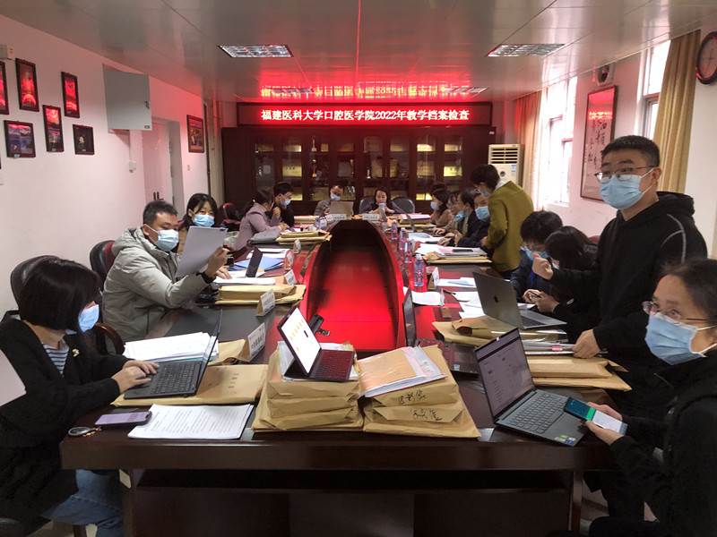 2022年12月6日下午,口腔医学院2022年教学档案检查工作会议于福建医科大学台江校区F楼西203会议室召开。本次工作会议由学校督导组李柱来组长带队,校督导组成员廖美玲,王晓露,康日辉四位老师担任检查团专家,对口腔医学院2021-2022学年所有教学档案展开检查。会议由本科教学办副主任梁雪主持,各教研室教学秘书及教学骨干,本科教学办工作人员,实验教学中心工作人员参加了会议。